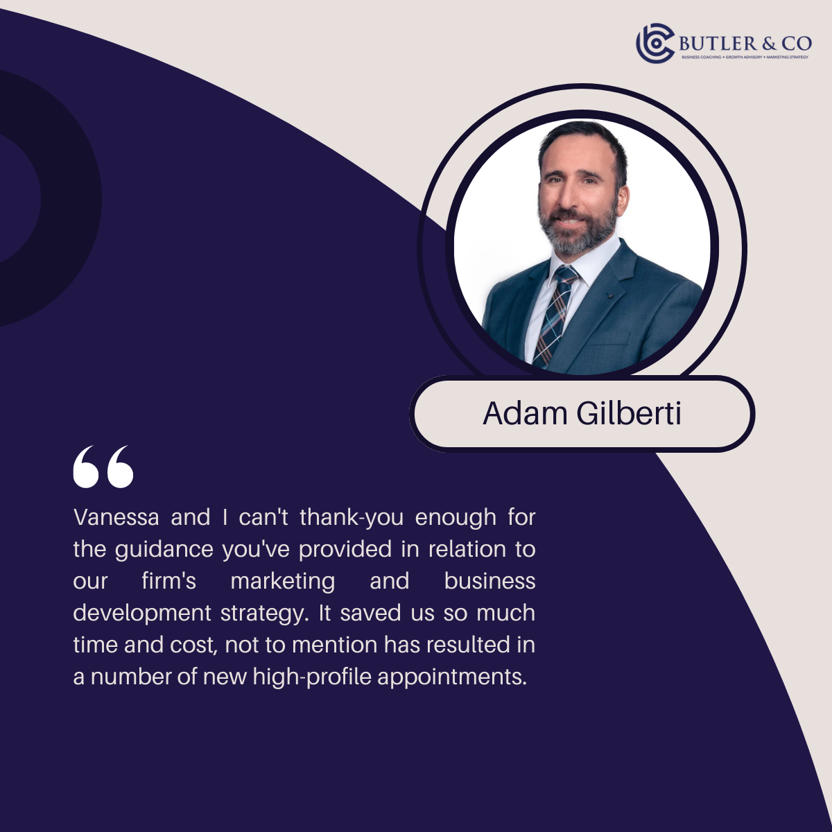 “Working with Butler & Co has been such a positive experience, helping me develop a suitable marketing strategy and generate high quality leads. Butler & Co are very professional and have a very strategic approach. We’ve achieved outstanding results and through my experience, I can honestly recommend Butler & Co and the services 100%.”